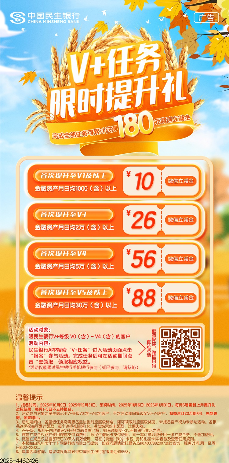 V+任务限时提升礼 完成全部任务可累计获得180元微信立减金